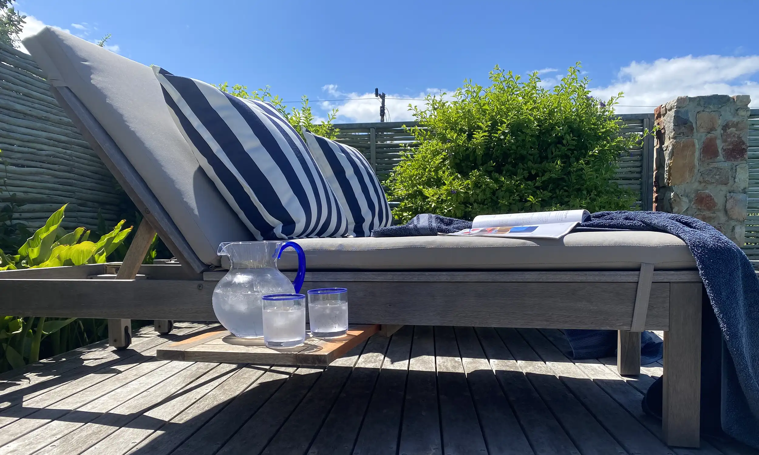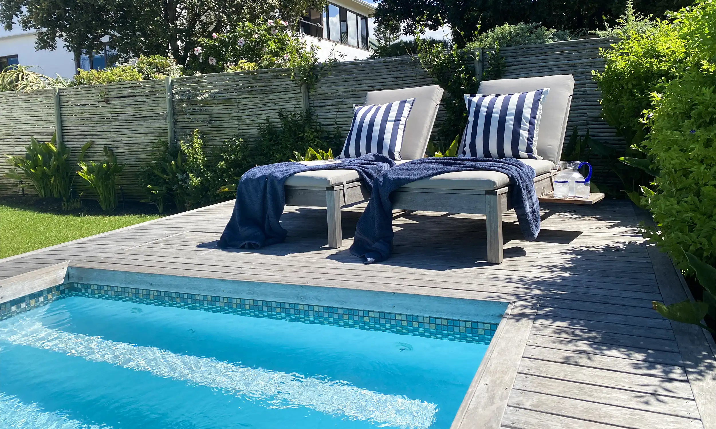 Step outside to your own private saltwater pool and a cozy little decking area with sun loungers — ideal for soaking up the sun or enjoying a refreshing swim.